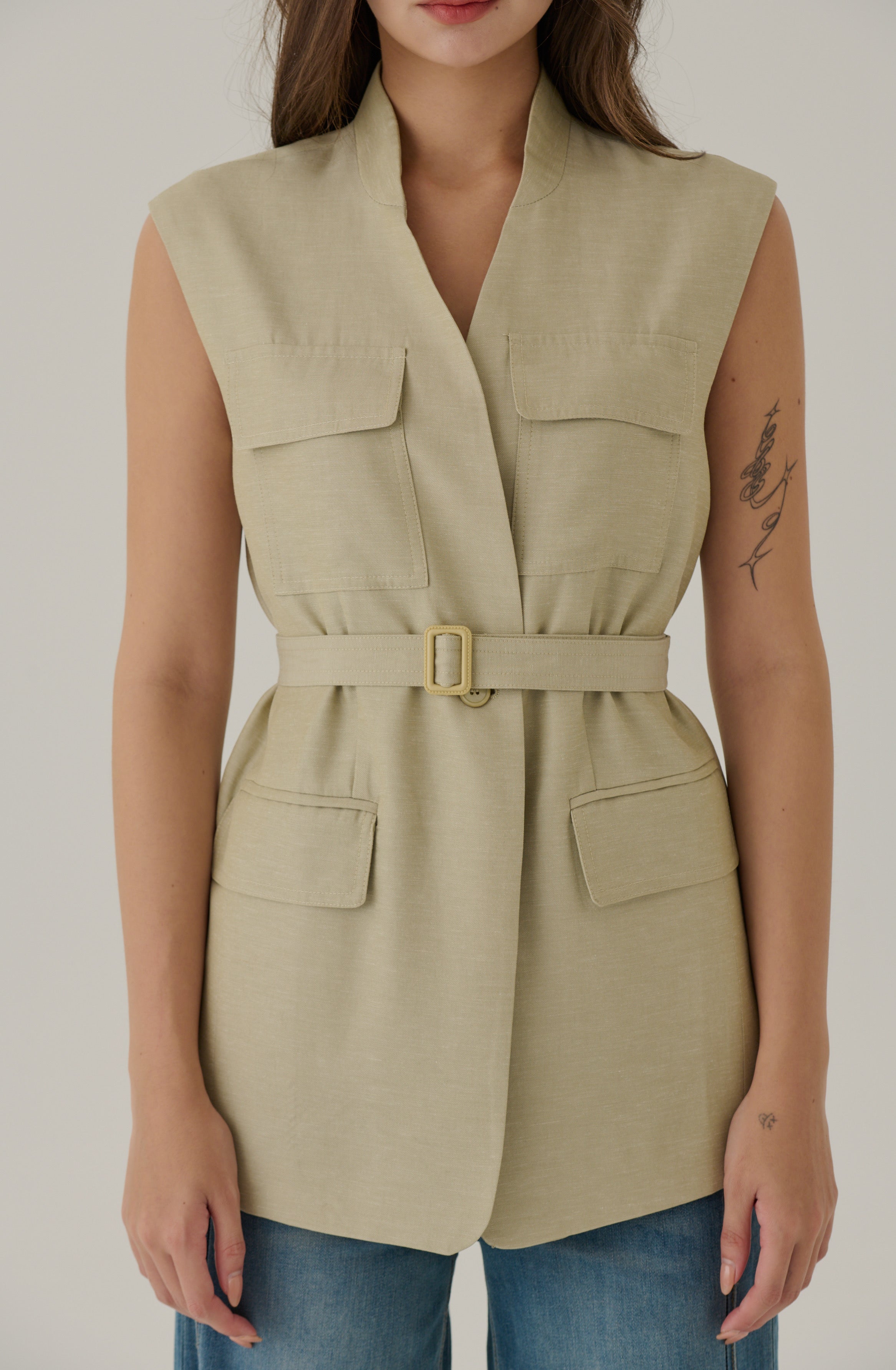 Capable woman sleeveless blazer