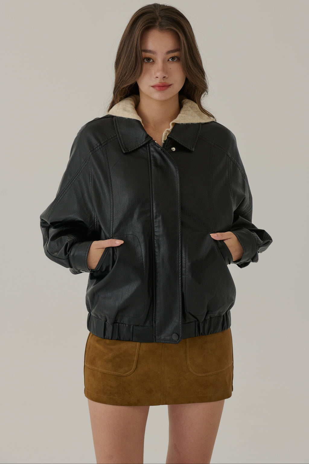 Moonlight dream faux leather jacket in black